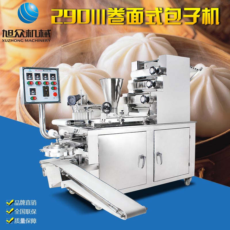 290III卷面式包子機(jī),可生產(chǎn)各種不同餡料的包子、各式包餡食品,如豆沙包、南瓜餅、肉包、小籠包、水晶包等幾十種包餡制品。適用于個體戶、食品廠、學(xué)校等單位食堂??蓾M足不同客戶群體。免費(fèi)提供工藝技術(shù)。