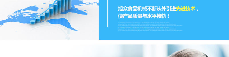 廣州旭眾食品機械有限公司是一家集科研開發(fā),生產(chǎn)設計,營銷服務為一體的現(xiàn)代化生產(chǎn)企業(yè)?,F(xiàn)代化生產(chǎn)車間,精湛制造技術,所產(chǎn)機械歷經(jīng)市場重重考驗,不斷贏得海內(nèi)外客戶的贊譽。