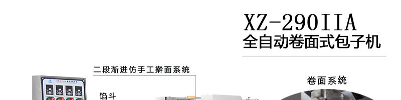 XZ-290IIA包子機,可生產(chǎn)各種不同餡料的包子、各式包餡食品,如豆沙包、南瓜餅、肉包、小籠包、水晶包等幾十種包餡制品。適用于個體戶、食品廠、學校等單位食堂??蓾M足不同客戶群體。免費提供工藝技術。