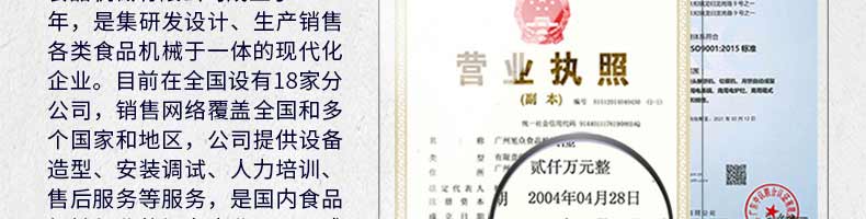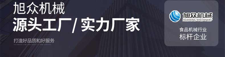 廣州旭眾食品機(jī)械有限公司是一家集科研開發(fā),生產(chǎn)設(shè)計(jì),營銷服務(wù)為一體的現(xiàn)代化生產(chǎn)企業(yè)。現(xiàn)代化生產(chǎn)車間,精湛制造技術(shù),所產(chǎn)機(jī)械歷經(jīng)市場重重考驗(yàn),不斷贏得海內(nèi)外客戶的贊譽(yù)。