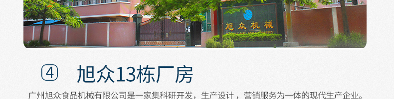 廣州旭眾食品機(jī)械有限公司是一家集科研開發(fā),生產(chǎn)設(shè)計,營銷服務(wù)為一體的現(xiàn)代化生產(chǎn)企業(yè)?,F(xiàn)代化生產(chǎn)車間,精湛制造技術(shù),所產(chǎn)機(jī)械歷經(jīng)市場重重考驗,不斷贏得海內(nèi)外客戶的贊譽。