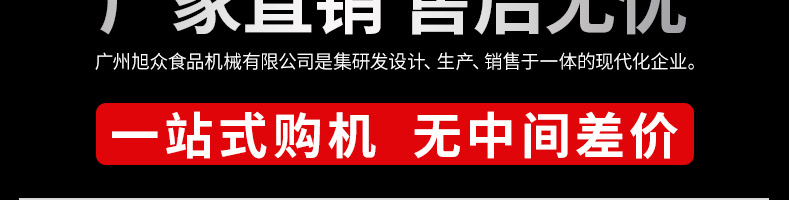 廣州旭眾食品機(jī)械有限公司是一家集科研開發(fā),生產(chǎn)設(shè)計(jì),營(yíng)銷服務(wù)為一體的現(xiàn)代化生產(chǎn)企業(yè)?,F(xiàn)代化生產(chǎn)車間,精湛制造技術(shù),所產(chǎn)機(jī)械歷經(jīng)市場(chǎng)重重考驗(yàn),不斷贏得海內(nèi)外客戶的贊譽(yù)。