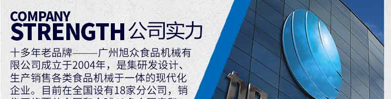 廣州旭眾食品機(jī)械有限公司是一家集科研開發(fā),生產(chǎn)設(shè)計(jì),營銷服務(wù)為一體的現(xiàn)代化生產(chǎn)企業(yè)。現(xiàn)代化生產(chǎn)車間,精湛制造技術(shù),所產(chǎn)機(jī)械歷經(jīng)市場重重考驗(yàn),不斷贏得海內(nèi)外客戶的贊譽(yù)。