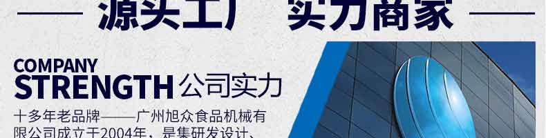廣州旭眾食品機械有限公司是一家集科研開發(fā),生產(chǎn)設計,營銷服務為一體的現(xiàn)代化生產(chǎn)企業(yè)?,F(xiàn)代化生產(chǎn)車間,精湛制造技術,所產(chǎn)機械歷經(jīng)市場重重考驗,不斷贏得海內(nèi)外客戶的贊譽。