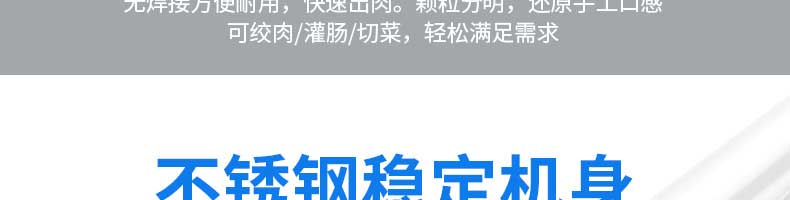 XZL-32A絞肉機(jī),快速絞肉它做得到。告別單一,多項(xiàng)功能,絞肉絞菜灌腸輕松搞定。機(jī)身小巧使用便利,是廚房的理想之選絞餡無(wú)壓力,適合餐廳,飯店,酒店等場(chǎng)所使用無(wú)焊接方便耐用,快速出肉。顆粒分明,還原手工口感可絞肉/灌腸/切菜,輕松滿足需求。