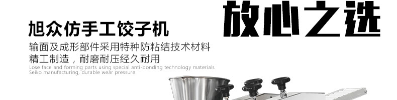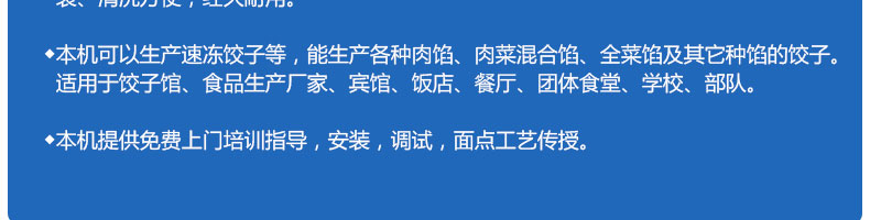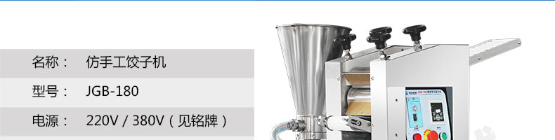 JGB-180餃子機,先進(jìn)的自動餃子生產(chǎn)設(shè)備,包括主動壓皮部分、自動供餡部分、自動包合部分、自動成品輸送部分,并且只要更換模具,就可制鍋貼等食品。適合食品速凍廠、飯店、廠礦學(xué)校食堂等制作包餡面制品單位使用。