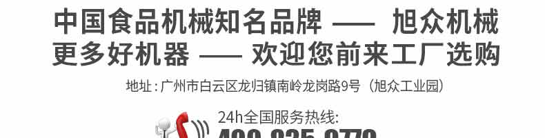 廣州旭眾食品機械有限公司是一家集科研開發(fā),生產設計,營銷服務為一體的現(xiàn)代化生產企業(yè)。現(xiàn)代化生產車間,精湛制造技術,所產機械歷經市場重重考驗,不斷贏得海內外客戶的贊譽。