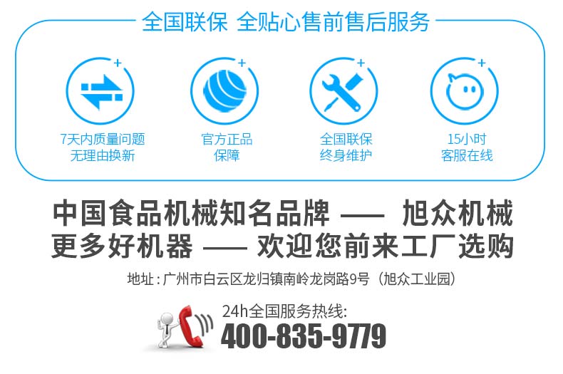 廣州旭眾食品機(jī)械有限公司是一家集科研開發(fā),生產(chǎn)設(shè)計(jì),營(yíng)銷服務(wù)為一體的現(xiàn)代化生產(chǎn)企業(yè)?,F(xiàn)代化生產(chǎn)車間,精湛制造技術(shù),所產(chǎn)機(jī)械歷經(jīng)市場(chǎng)重重考驗(yàn),不斷贏得海內(nèi)外客戶的贊譽(yù)。