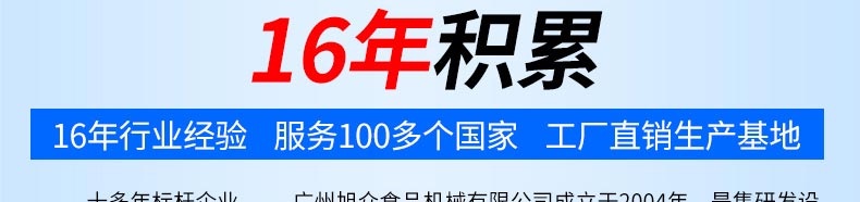 廣州旭眾食品機械有限公司是一家集科研開發(fā),生產(chǎn)設(shè)計,營銷服務(wù)為一體的現(xiàn)代化生產(chǎn)企業(yè)?,F(xiàn)代化生產(chǎn)車間,精湛制造技術(shù),所產(chǎn)機械歷經(jīng)市場重重考驗,不斷贏得海內(nèi)外客戶的贊譽。