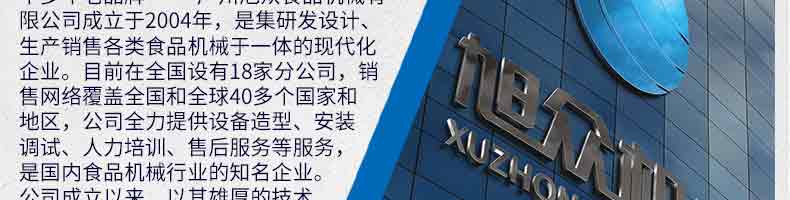 廣州旭眾食品機(jī)械有限公司是一家集科研開(kāi)發(fā),生產(chǎn)設(shè)計(jì),營(yíng)銷服務(wù)為一體的現(xiàn)代化生產(chǎn)企業(yè)?,F(xiàn)代化生產(chǎn)車間,精湛制造技術(shù),所產(chǎn)機(jī)械歷經(jīng)市場(chǎng)重重考驗(yàn),不斷贏得海內(nèi)外客戶的贊譽(yù)。