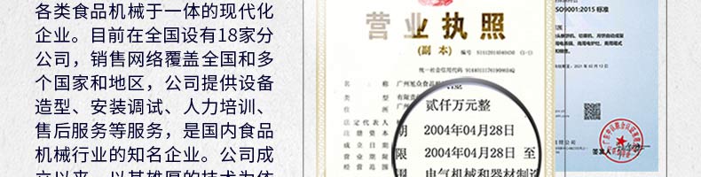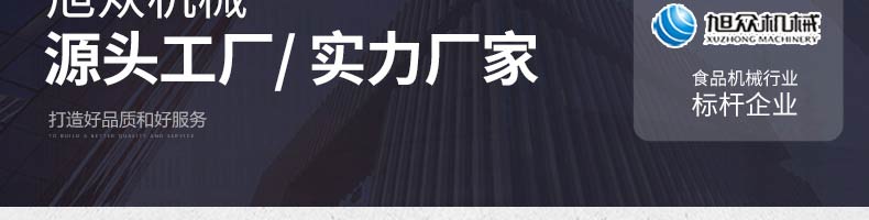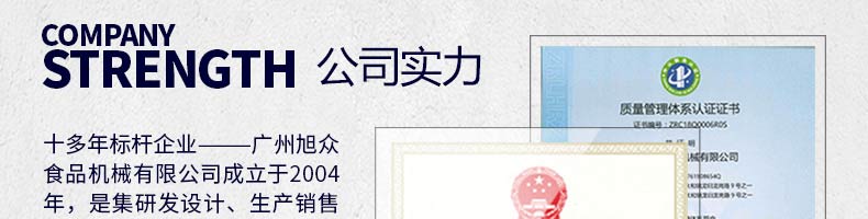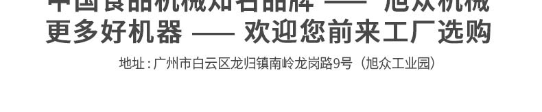 廣州旭眾食品機械有限公司是一家集科研開發(fā),生產設計,營銷服務為一體的現(xiàn)代化生產企業(yè)。現(xiàn)代化生產車間,精湛制造技術,所產機械歷經市場重重考驗,不斷贏得海內外客戶的贊譽。
