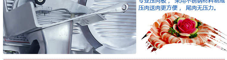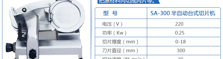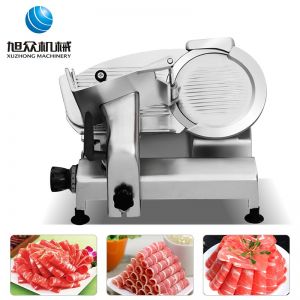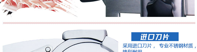 臺(tái)式半自動(dòng)切片機(jī),適合切無(wú)骨肉類(lèi)和其他類(lèi)似榨菜帶有彈性的食物,把原材料肉切成肉片,并可自動(dòng)成卷狀??汕信H馄?、羊肉片等