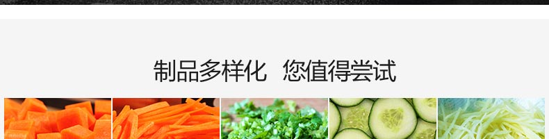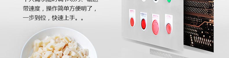 XZ-680A多功能切菜機,一機多用,可切葉菜及根莖類蔬菜,并可切片、絲、條、丁、段,碎等,切菜規(guī)格可根據(jù)不同需要調(diào)節(jié)尺寸,方便快捷。隨機共配送三套刀具。