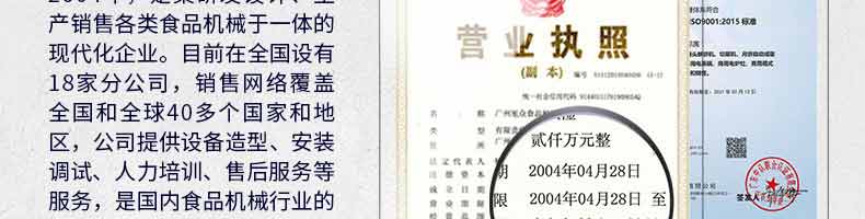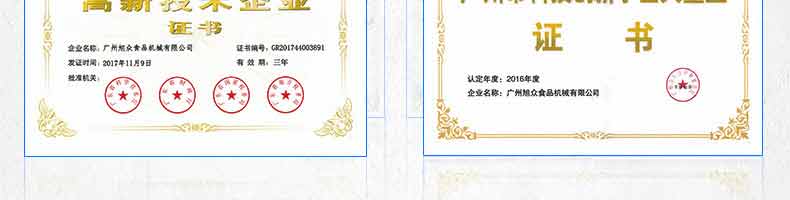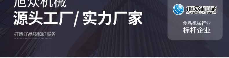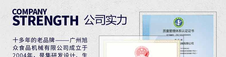 廣州旭眾食品機械有限公司是一家集科研開發(fā),生產設計,營銷服務為一體的現代化生產企業(yè)?,F代化生產車間,精湛制造技術,所產機械歷經市場重重考驗,不斷贏得海內外客戶的贊譽。