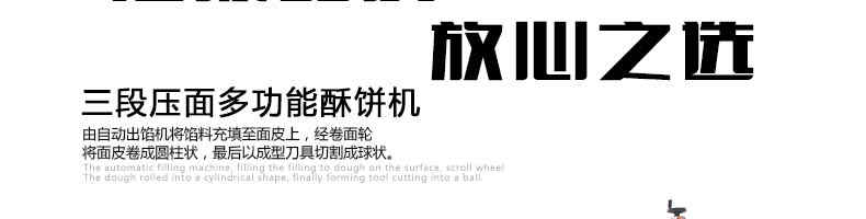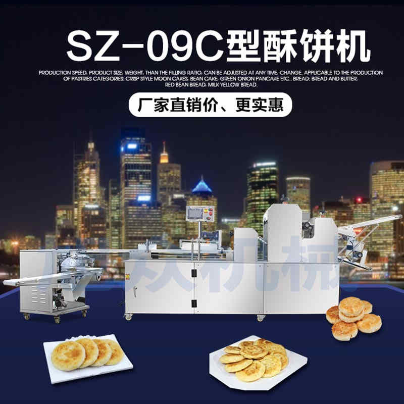 SZ-09C三段壓面蘇式月餅機(jī),生產(chǎn)速度、制品大小、重量、皮餡比例可隨時(shí)調(diào)整、變更。適用于蘇式月餅、綠豆餅、老婆餅、蔥油餅、鮮花餅、肉松餅、金華酥餅等。適用于大、中型糕餅生產(chǎn)廠家,免費(fèi)提供工藝技術(shù)。