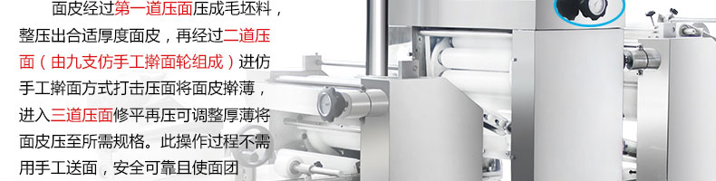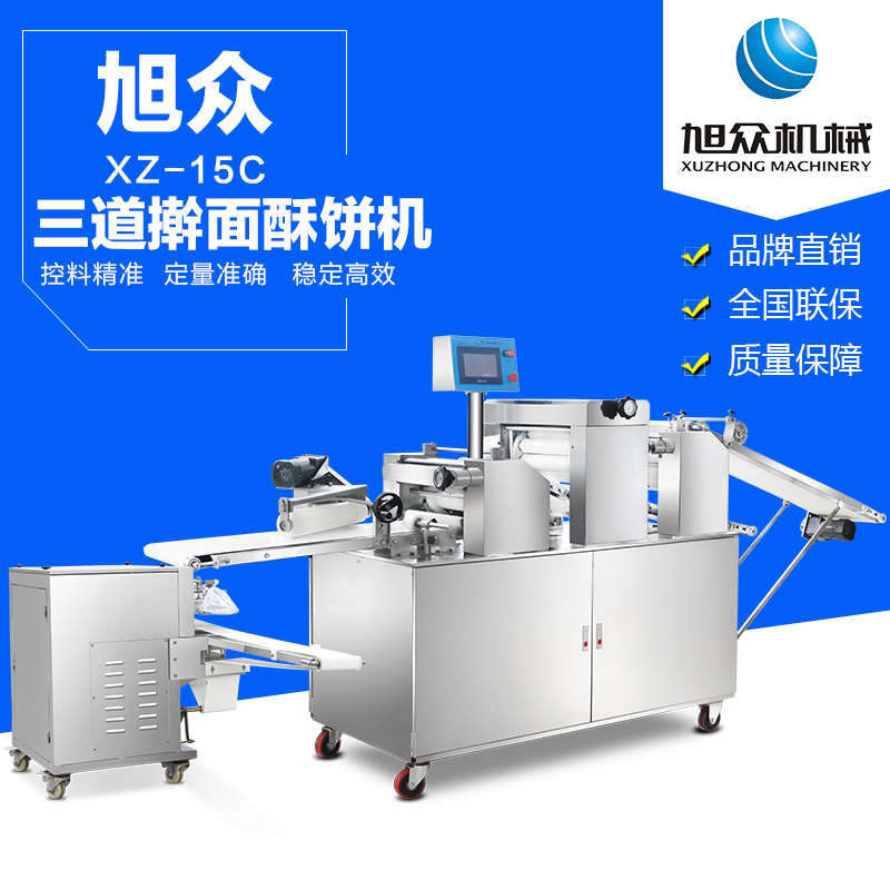 xz-15c三道搟面酥餅機,仿手工制作面食產(chǎn)品的機型,占地面積小,重量輕,運用搟面杖壓面和打擊面團,以保證高面筋性和面帶的密度,并綜合考慮面食的口感而研發(fā)??缮a(chǎn)東北糖酥餅,東北大香酥餅,蘇式月餅,芝麻餅,鮮花餅,老婆餅。購機免費提供工藝技術