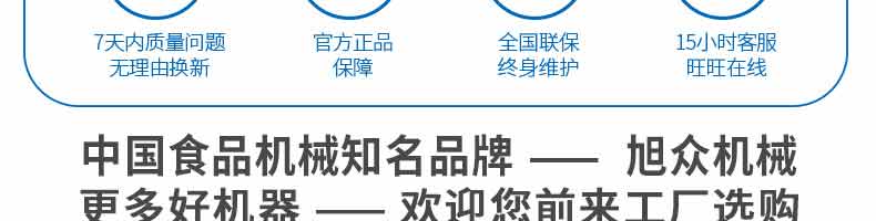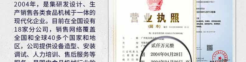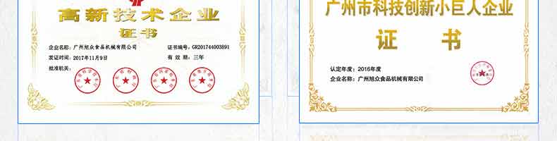 廣州旭眾食品機(jī)械有限公司是一家集科研開發(fā),生產(chǎn)設(shè)計(jì),營銷服務(wù)為一體的現(xiàn)代化生產(chǎn)企業(yè)?,F(xiàn)代化生產(chǎn)車間,精湛制造技術(shù),所產(chǎn)機(jī)械歷經(jīng)市場(chǎng)重重考驗(yàn),不斷贏得海內(nèi)外客戶的贊譽(yù)。