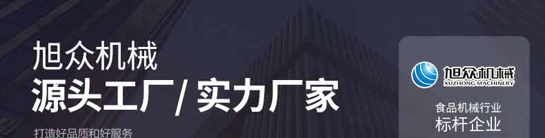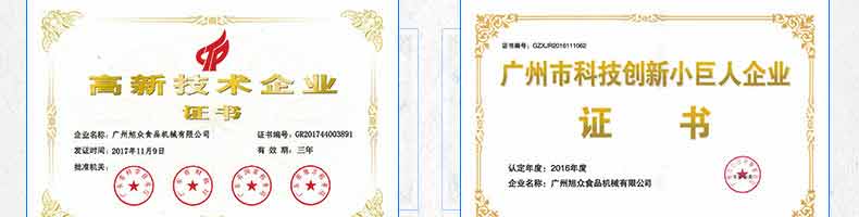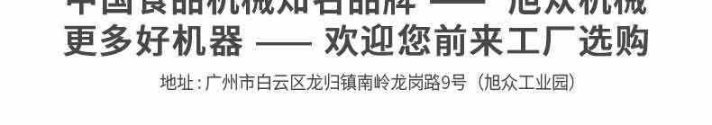 廣州旭眾食品機械有限公司是一家集科研開發(fā),生產(chǎn)設計,營銷服務為一體的現(xiàn)代化生產(chǎn)企業(yè)。現(xiàn)代化生產(chǎn)車間,精湛制造技術,所產(chǎn)機械歷經(jīng)市場重重考驗,不斷贏得海內(nèi)外客戶的贊譽。