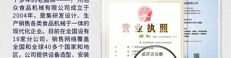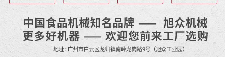 廣州旭眾食品機(jī)械有限公司是一家集科研開(kāi)發(fā),生產(chǎn)設(shè)計(jì),營(yíng)銷服務(wù)為一體的現(xiàn)代化生產(chǎn)企業(yè)。現(xiàn)代化生產(chǎn)車間,精湛制造技術(shù),所產(chǎn)機(jī)械歷經(jīng)市場(chǎng)重重考驗(yàn),不斷贏得海內(nèi)外客戶的贊譽(yù)。