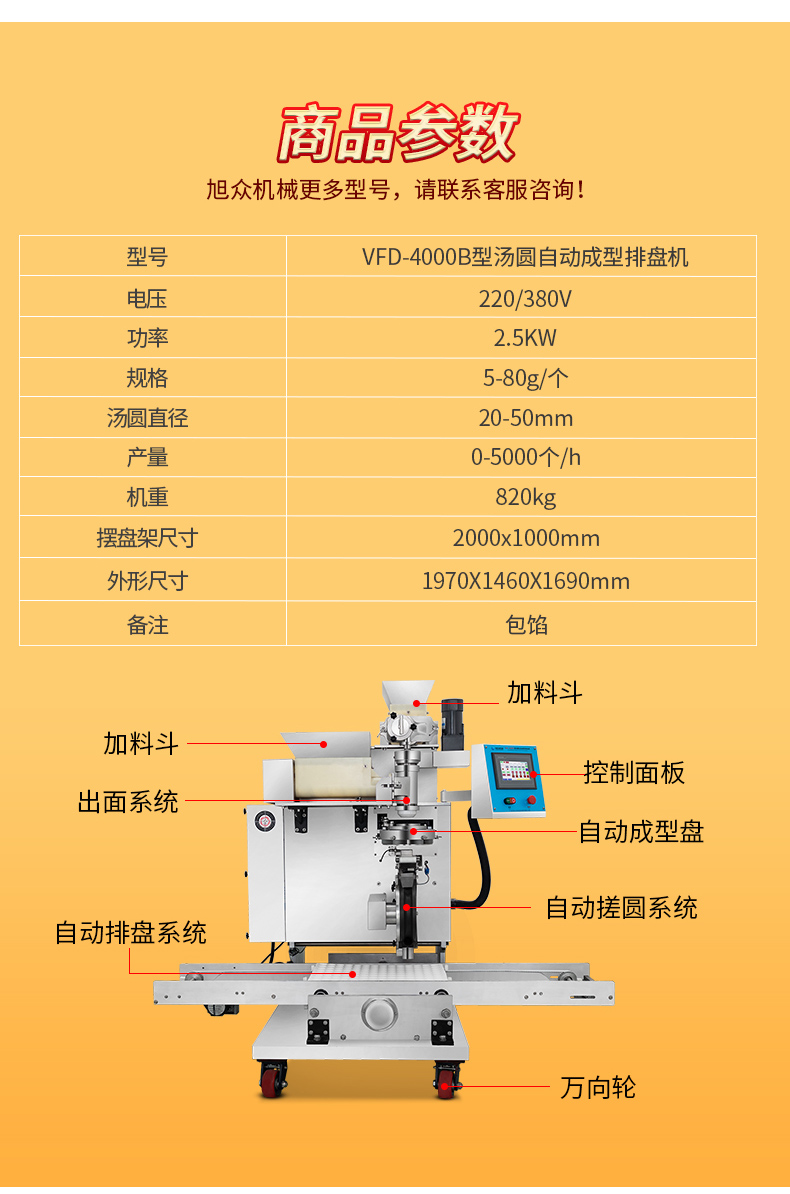 下面是VFD-4000B型湯圓自動(dòng)成型排盤機(jī)產(chǎn)品詳情