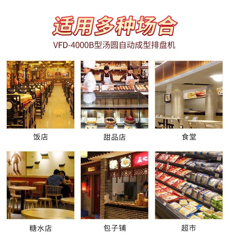今天給大家介紹一下這款VFD-4000B型湯圓機(jī),為什么要介紹它呢,這款機(jī)械制作多品種食品,關(guān)鍵是產(chǎn)量效率高,1小時(shí)的產(chǎn)量可達(dá)5000個(gè),相當(dāng)于20-30個(gè)工人同時(shí)手工制作湯圓,真正的低投入,高收益,省錢省工,可制作各式包餡食品,如湯圓、豆沙包、南瓜餅等,是賓館、飯店、企業(yè)、學(xué)校、部隊(duì)等公共食堂和專業(yè)戶理想的面食機(jī)械。