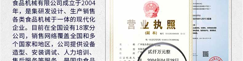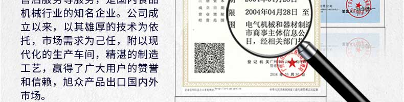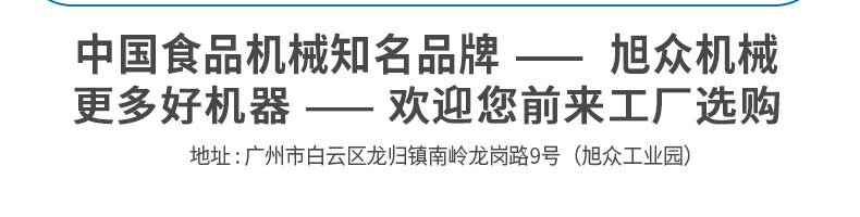 廣州旭眾食品機(jī)械有限公司是一家集科研開發(fā),生產(chǎn)設(shè)計,營銷服務(wù)為一體的現(xiàn)代化生產(chǎn)企業(yè)。現(xiàn)代化生產(chǎn)車間,精湛制造技術(shù),所產(chǎn)機(jī)械歷經(jīng)市場重重考驗,不斷贏得海內(nèi)外客戶的贊譽。