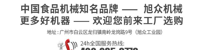 廣州旭眾食品機械有限公司是一家集科研開發(fā),生產設計,營銷服務為一體的現(xiàn)代化生產企業(yè)。現(xiàn)代化生產車間,精湛制造技術,所產機械歷經市場重重考驗,不斷贏得海內外客戶的贊譽。