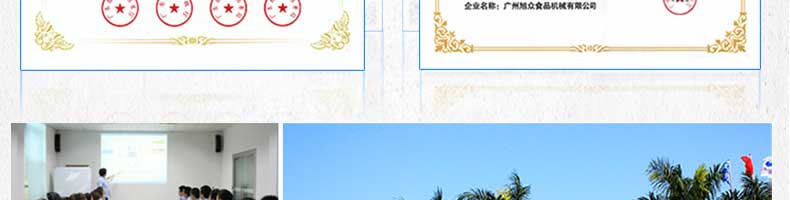 廣州旭眾食品機(jī)械有限公司是一家集科研開發(fā),生產(chǎn)設(shè)計(jì),營(yíng)銷服務(wù)為一體的現(xiàn)代化生產(chǎn)企業(yè)?,F(xiàn)代化生產(chǎn)車間,精湛制造技術(shù),所產(chǎn)機(jī)械歷經(jīng)市場(chǎng)重重考驗(yàn),不斷贏得海內(nèi)外客戶的贊譽(yù)。