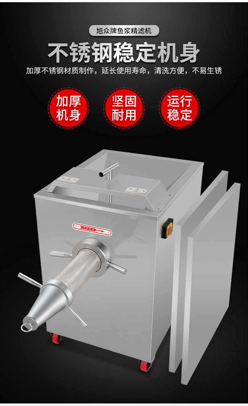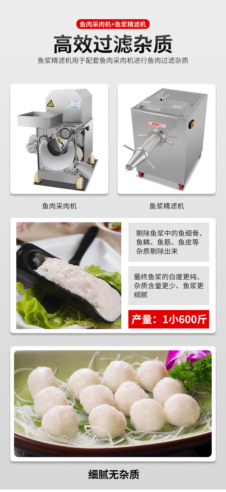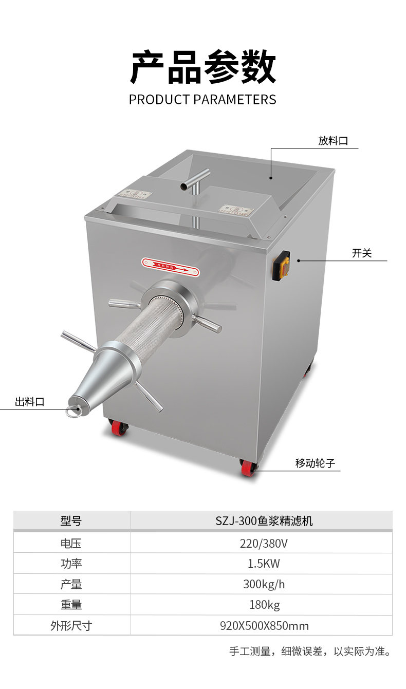 SZJ-300魚(yú)漿精濾機(jī),商用創(chuàng)業(yè)魚(yú)漿精濾機(jī),用于配套魚(yú)肉采肉機(jī)進(jìn)行魚(yú)肉過(guò)濾雜質(zhì)。節(jié)省人工開(kāi)支,人工加工魚(yú)漿,效率慢剔除魚(yú)細(xì)骨,不干凈,有了魚(yú)漿精濾機(jī),一人就可以很快制作多種魚(yú)漿。