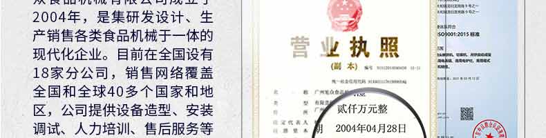 廣州旭眾食品機械有限公司是一家集科研開發(fā),生產(chǎn)設(shè)計,營銷服務(wù)為一體的現(xiàn)代化生產(chǎn)企業(yè)?,F(xiàn)代化生產(chǎn)車間,精湛制造技術(shù),所產(chǎn)機械歷經(jīng)市場重重考驗,不斷贏得海內(nèi)外客戶的贊譽。
